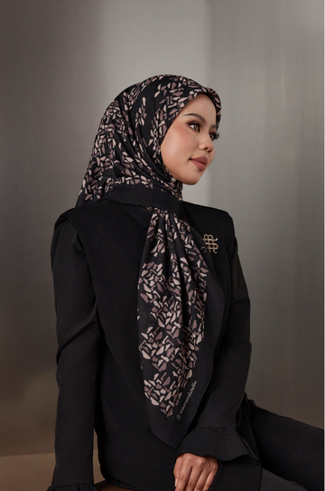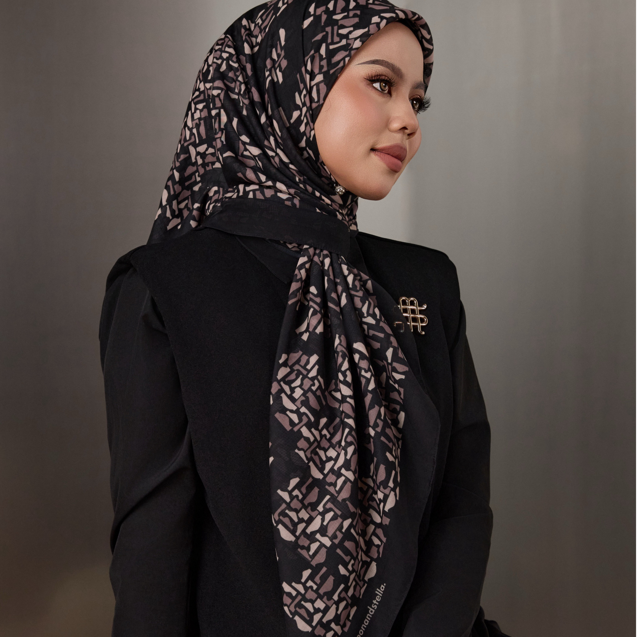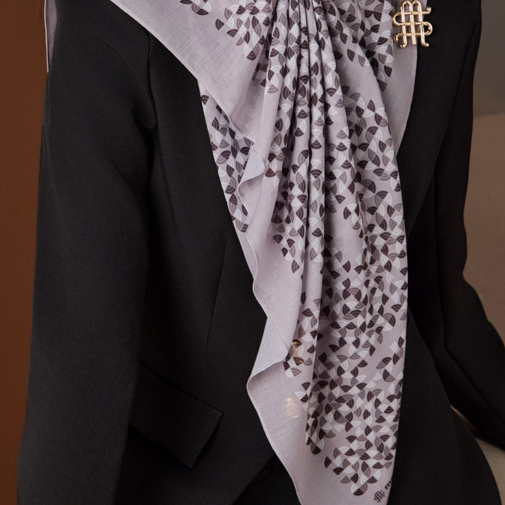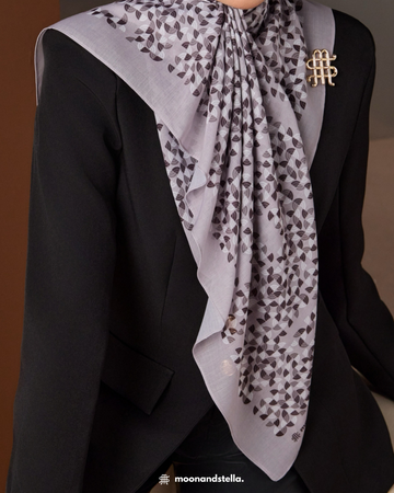 A printed scarf featuring unsymmetrical patterns for a bold, modern look. Easy to style, effortlessly...