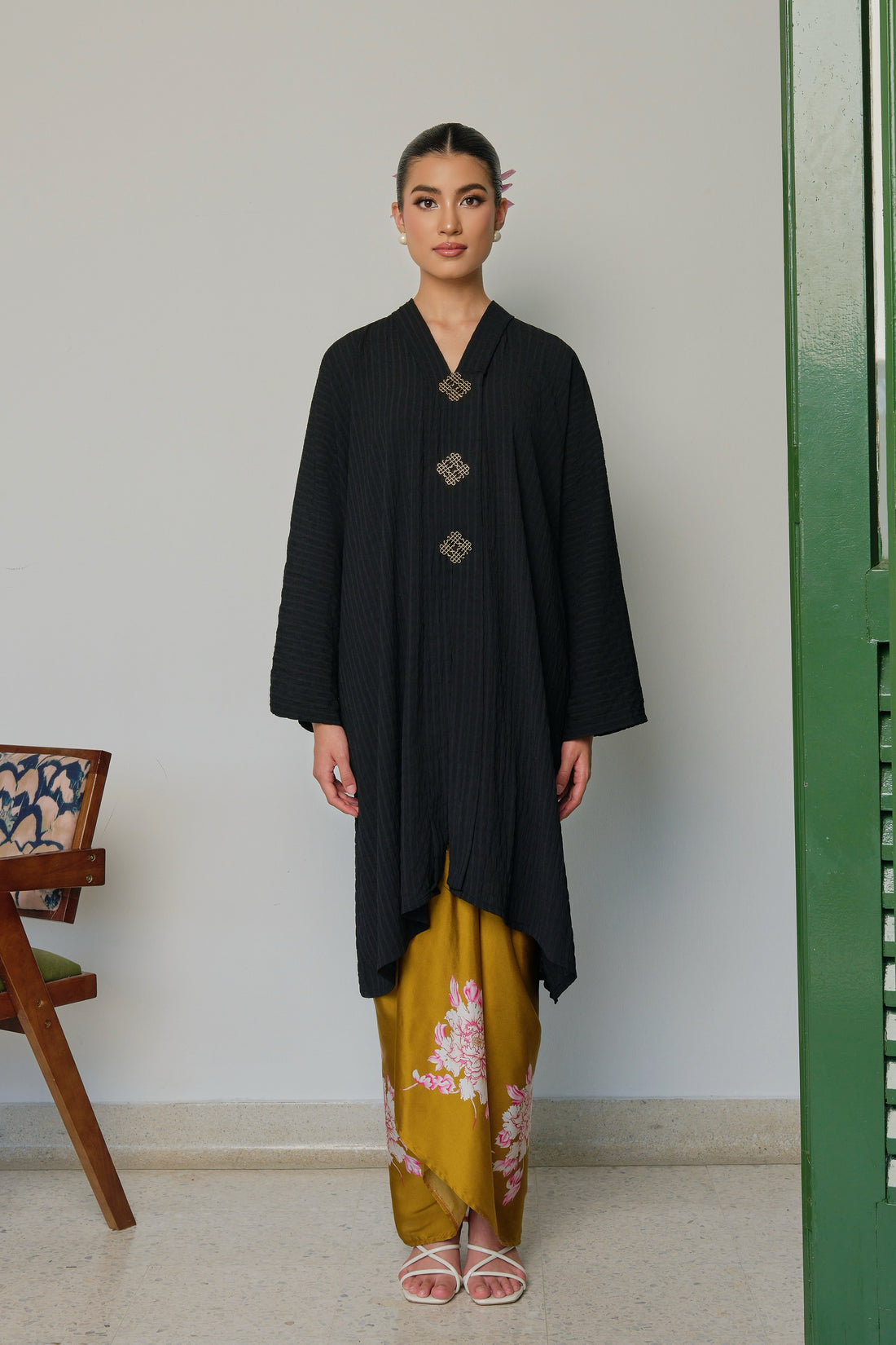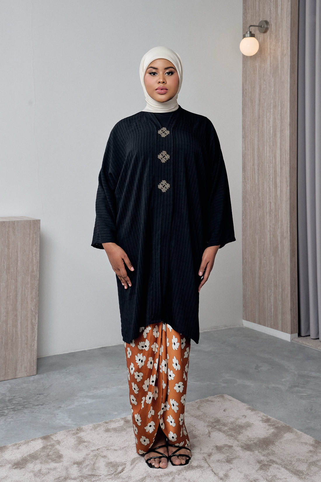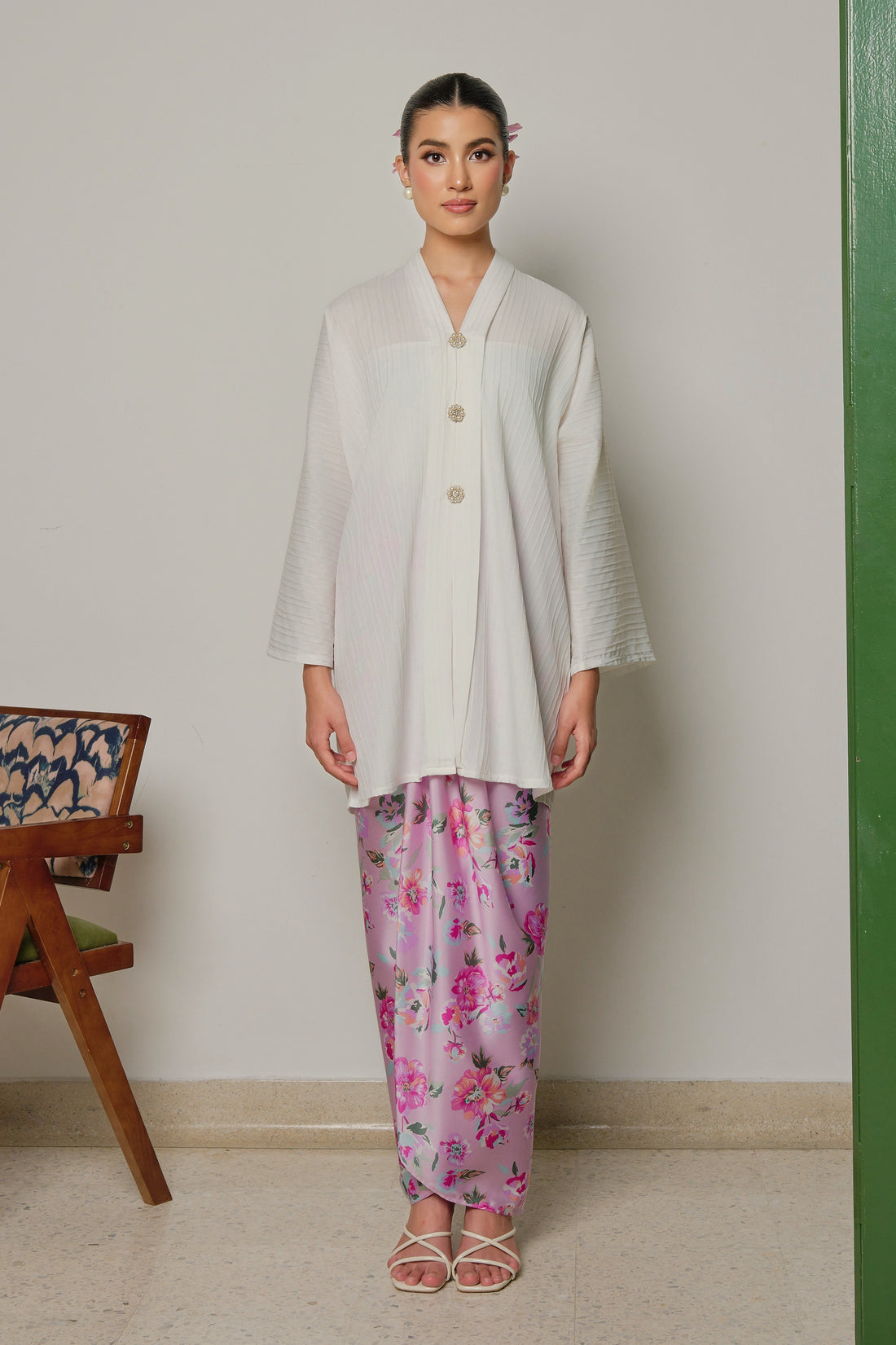 Product details: * Line Textured Soft Cotton Polyester Kebaya Labuh & Printed Satin Pario* V-shaped...
