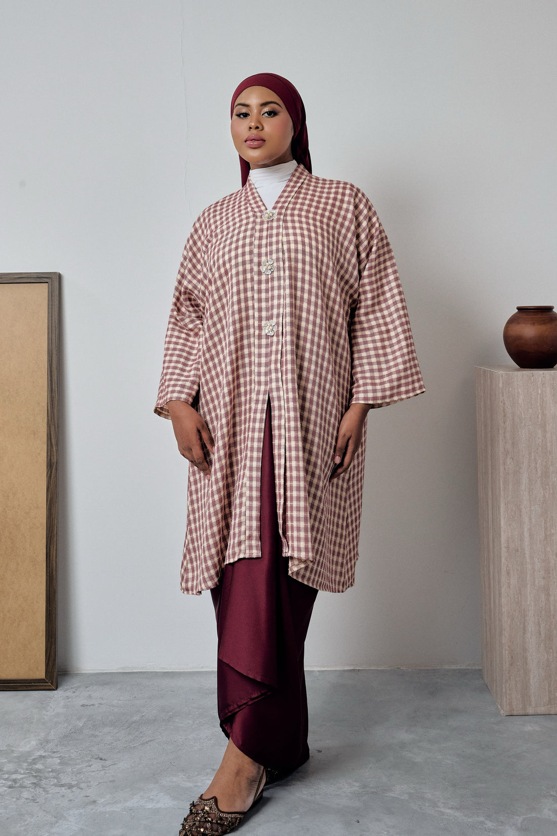 Product details: * Soft Checkered Cotton Midi Kebaya & Printed Satin Pario* V-shaped neck* Veil/selendang...