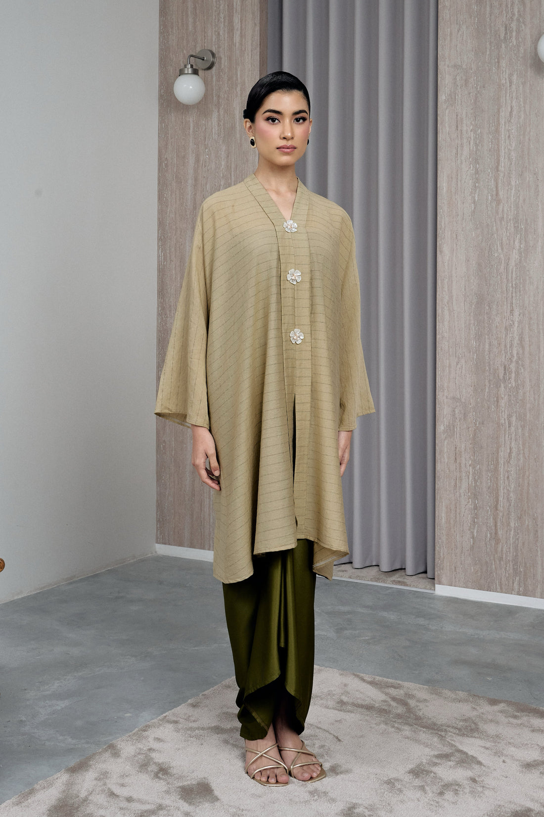 Product details: * Striped cotton kebaya and plain satin pario* V-shaped neck* Veil/selendang included Measurement...
