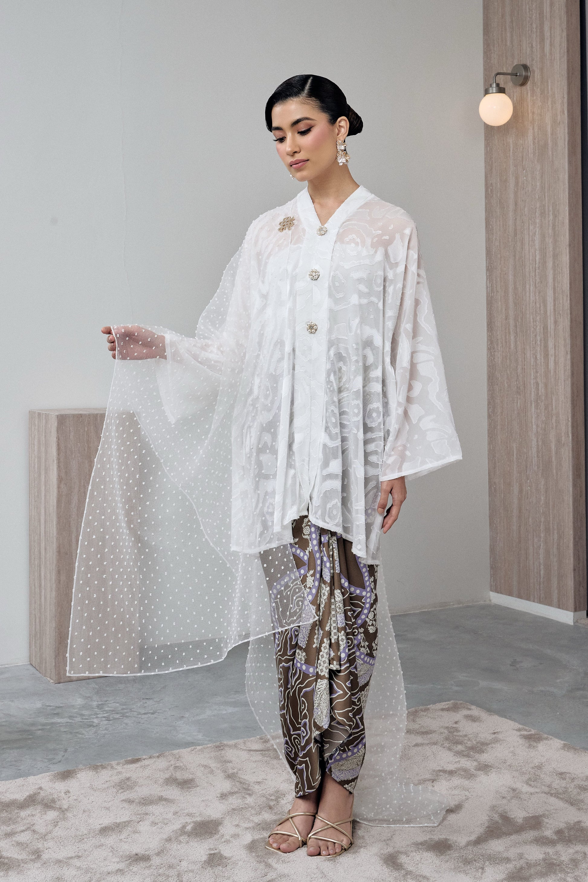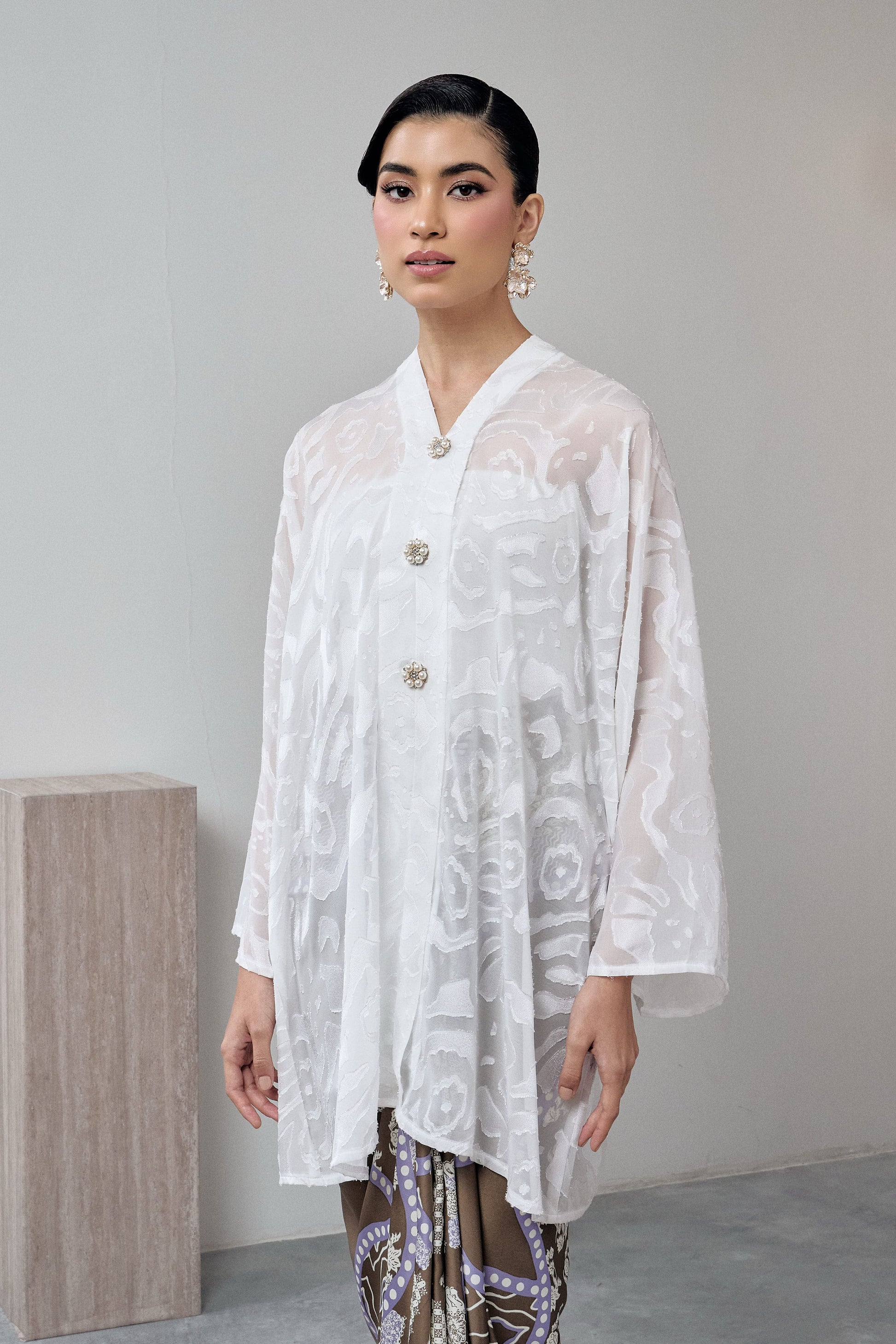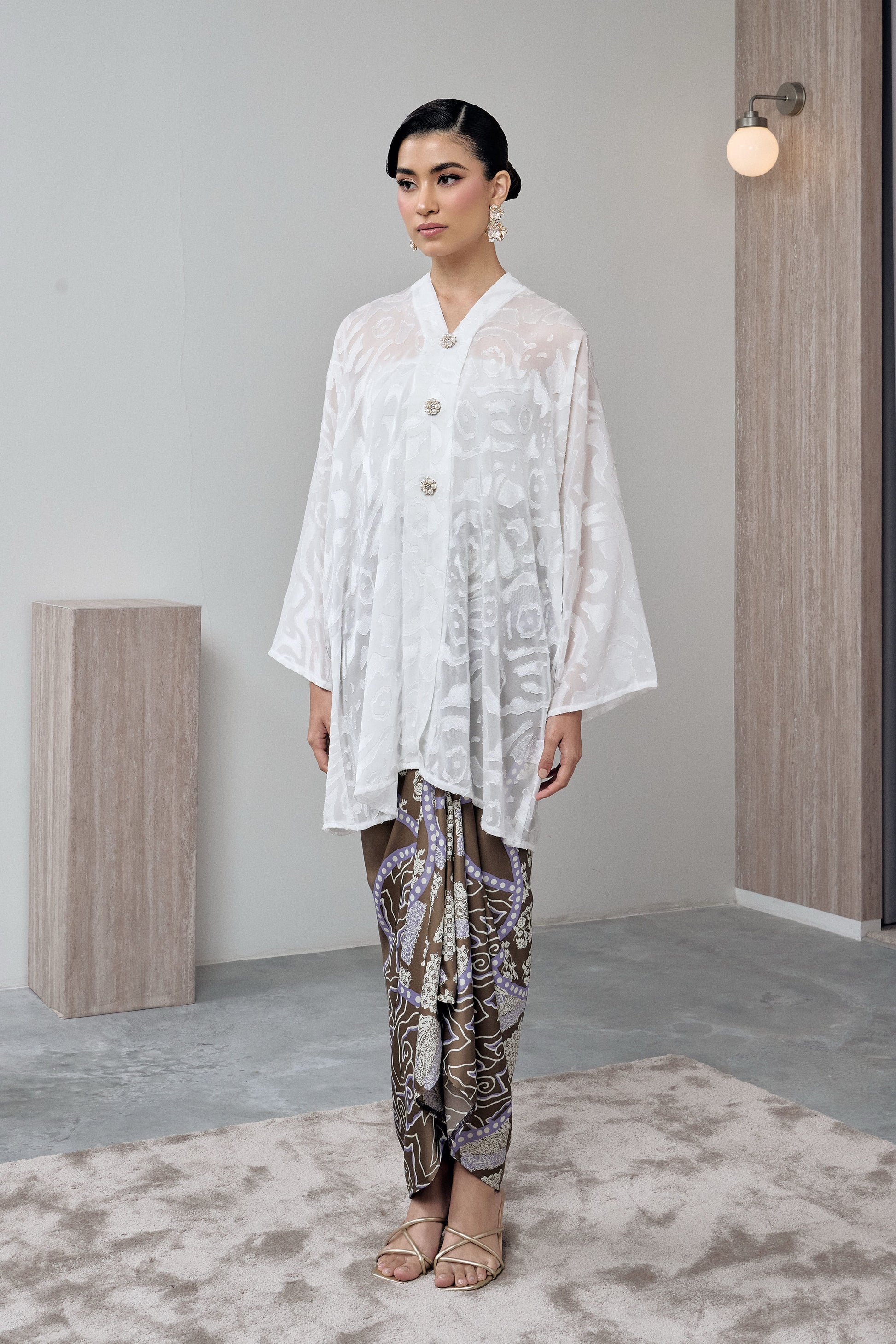 * Embroidered Kebaya Midi and Printed Satin Pario