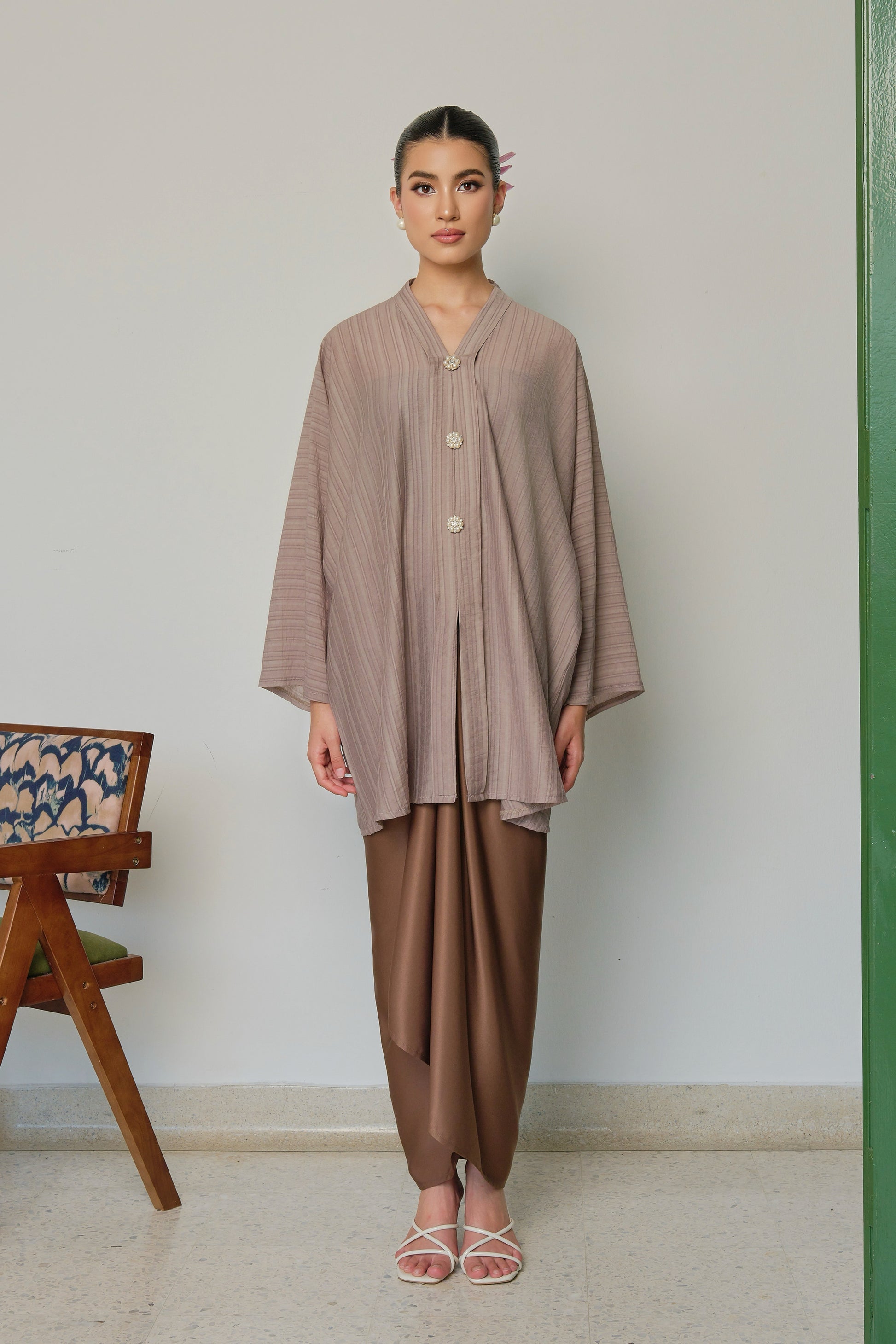 * Soft textured cotton polyster kebaya and plain satin pario