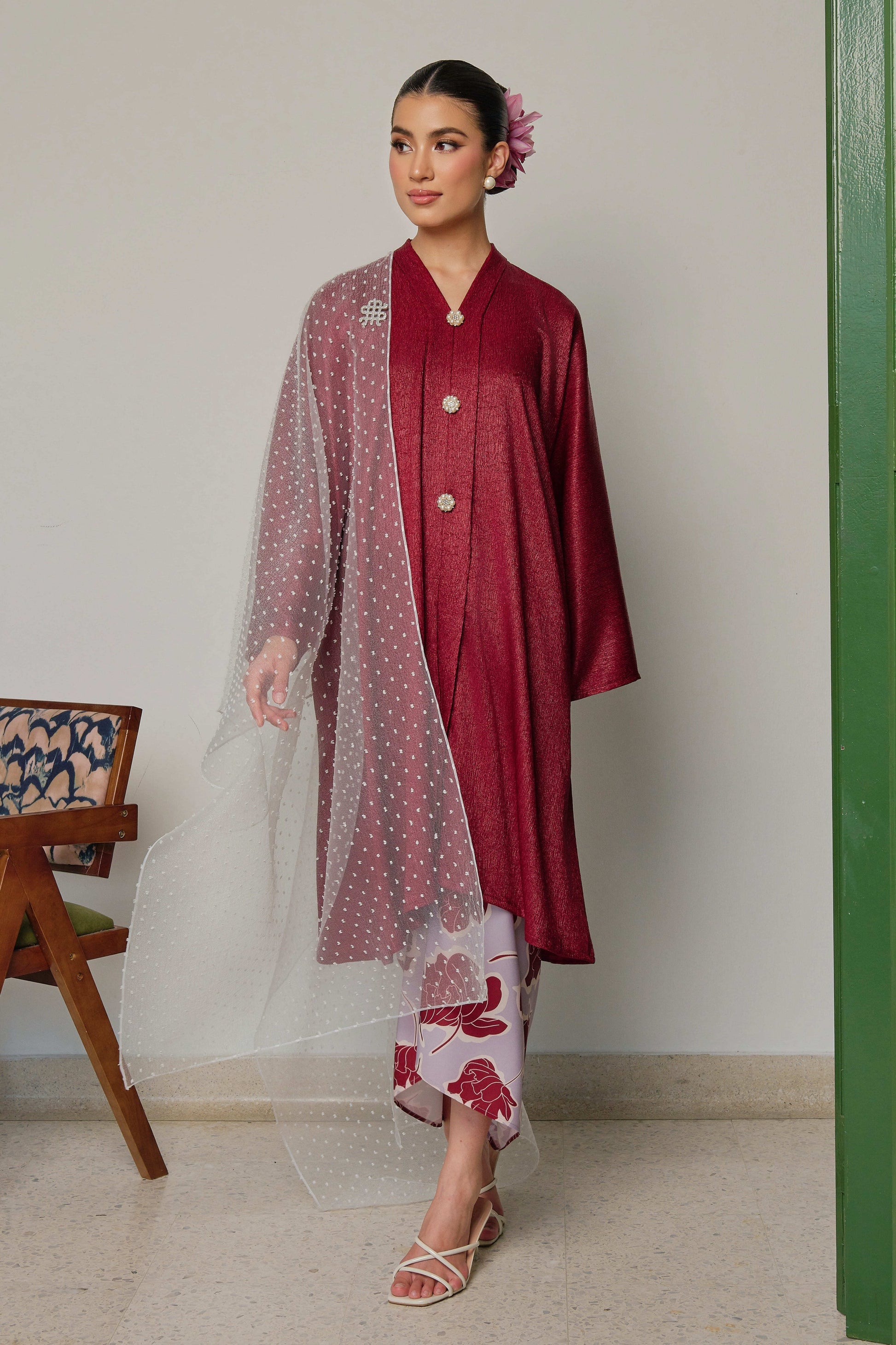 * Crinkle satin kebaya labuh and satin pario